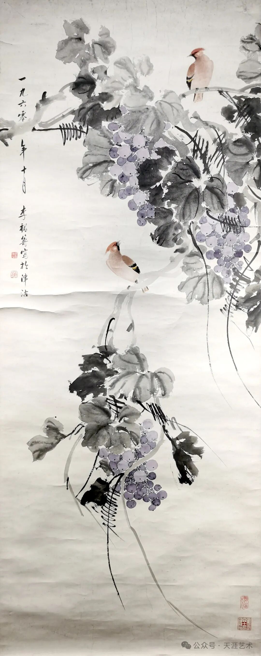 李鹤筹 葡萄双鸟 133x53 天津美术学院藏