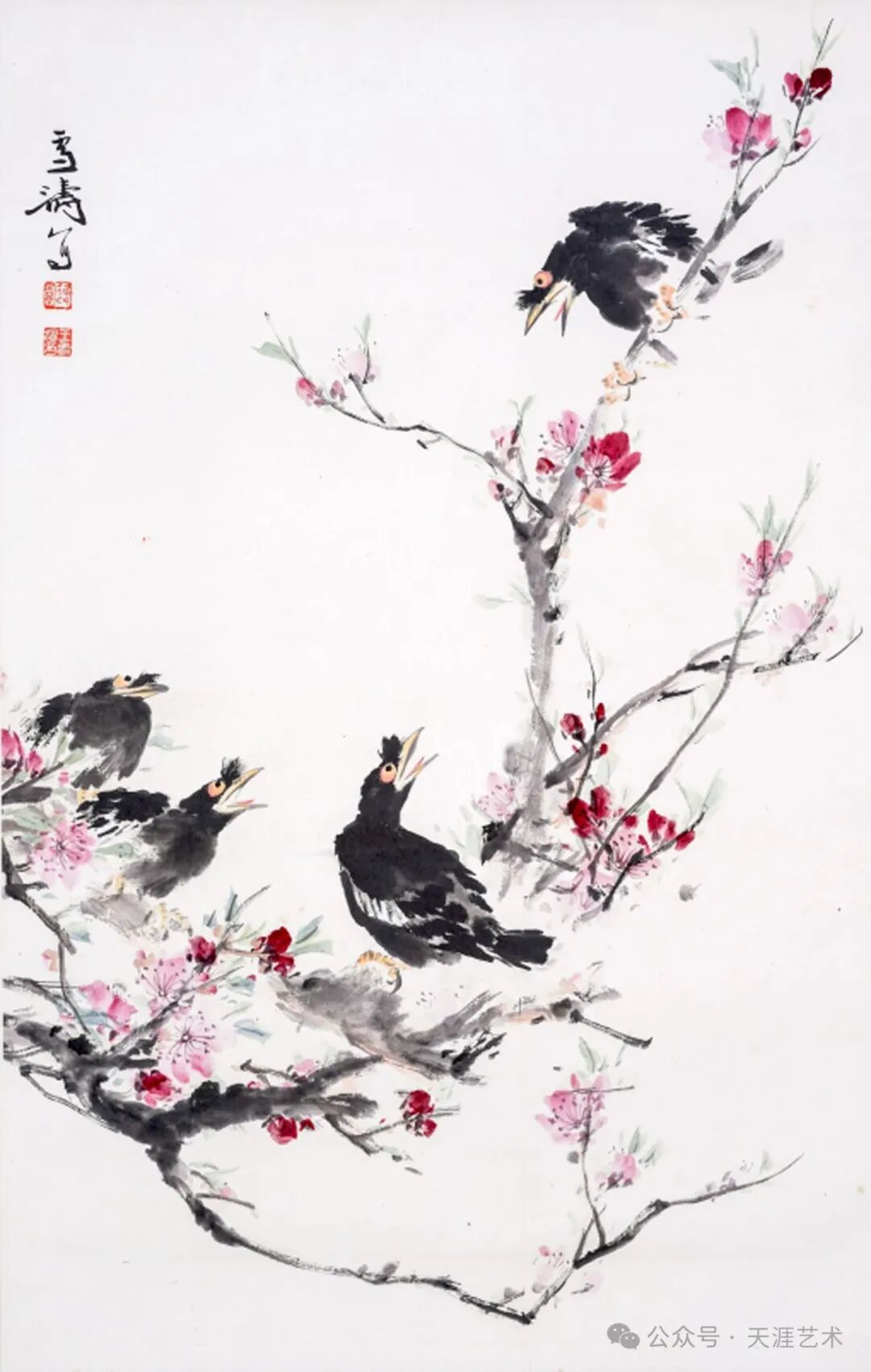 王雪涛 桃花八哥 83x53 天津美术学院藏