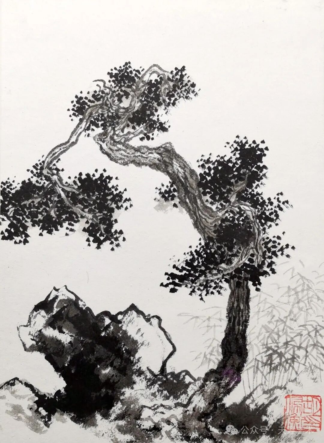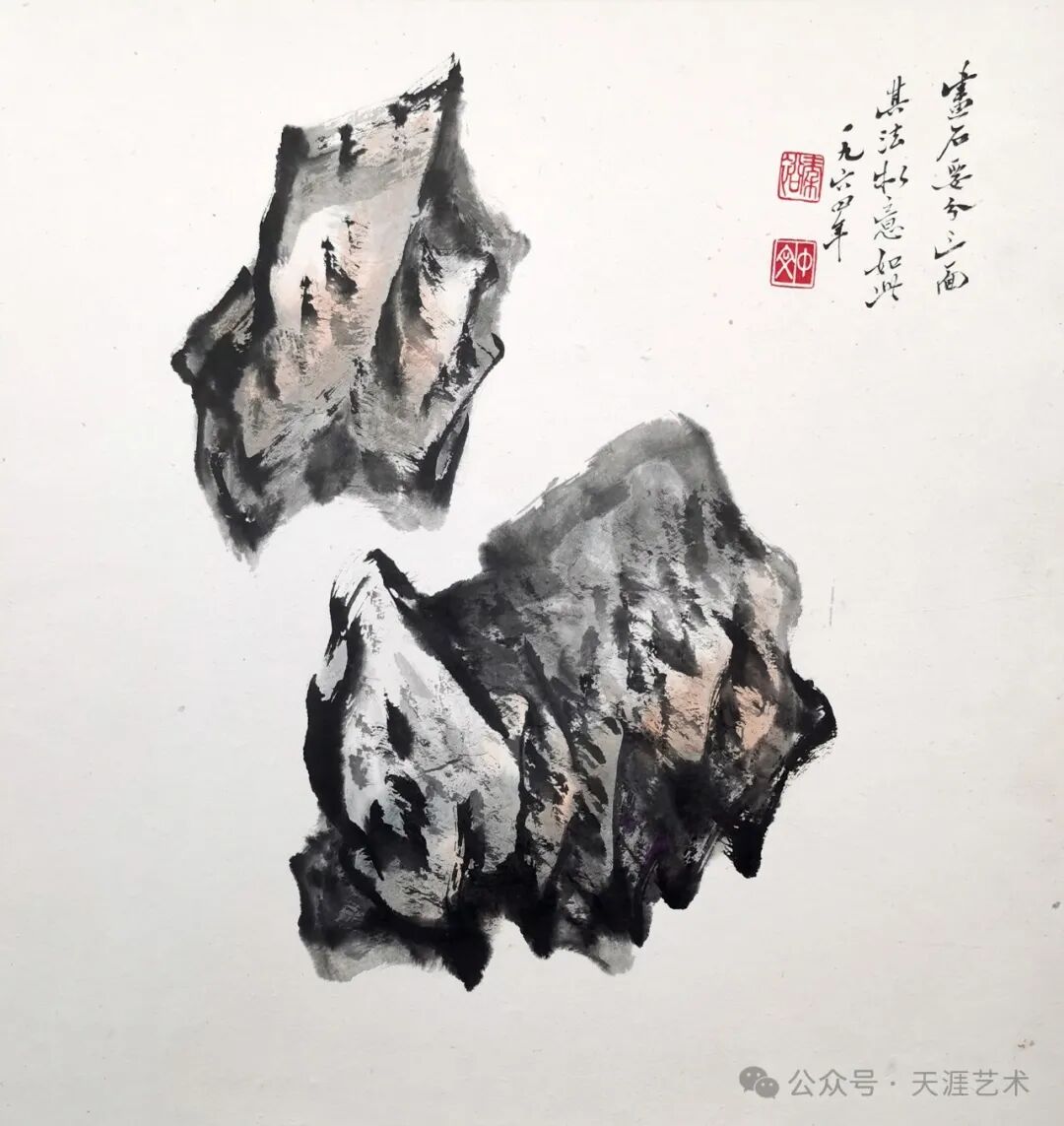 宁斧成 拳石画稿 137x69 天津美术学院藏