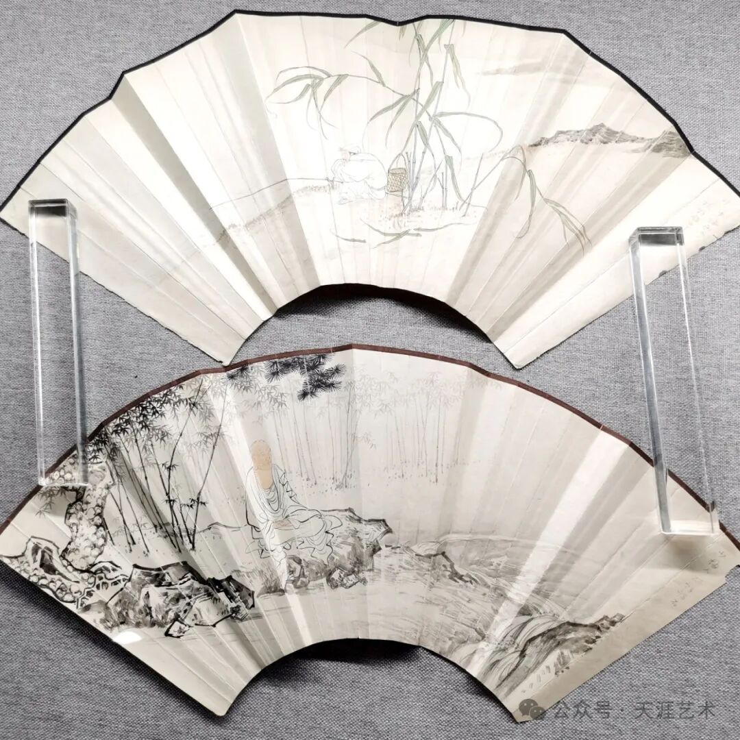陈少梅 人物扇面(陈少梅画人 王颂馀补芦,陈少梅画人 王颂馀补石)天津美术学院藏