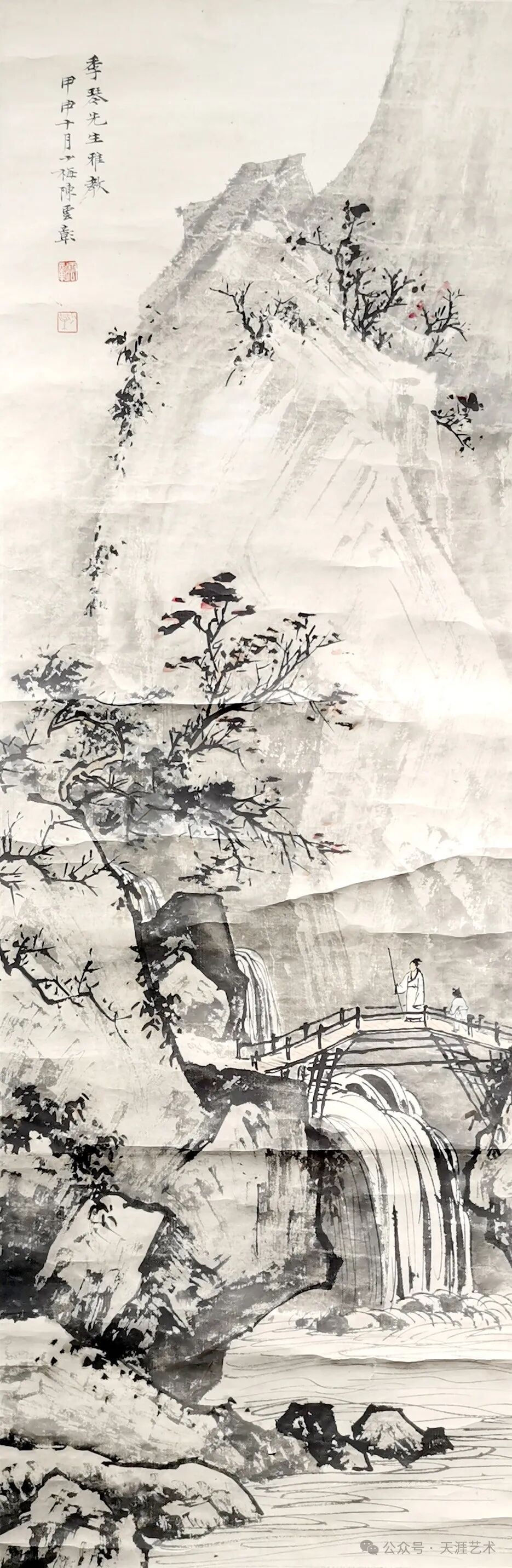 陈少梅 扶杖过溪桥 101x33 天津美术学院藏