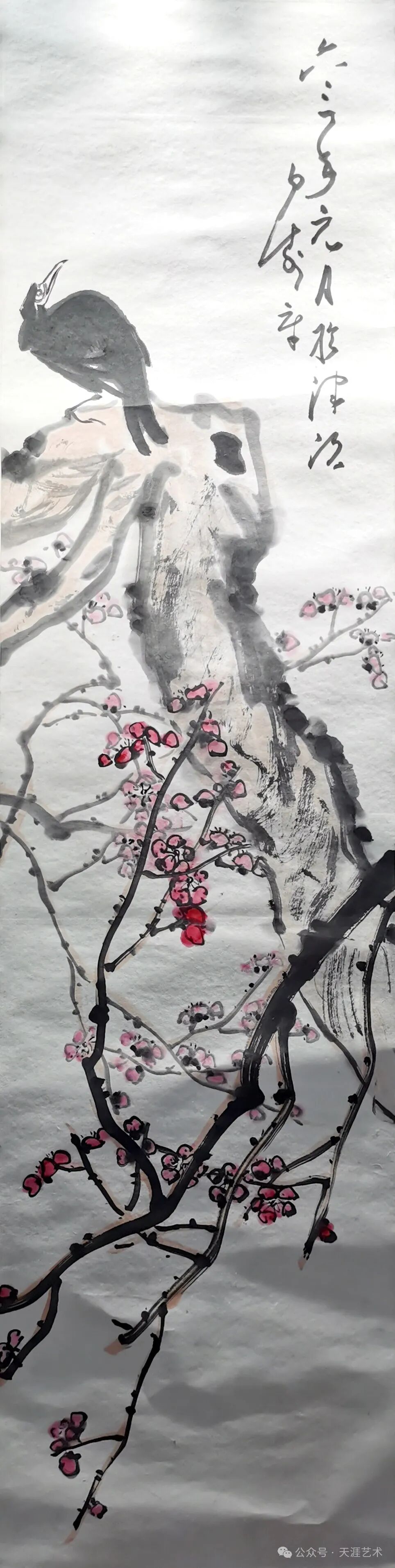 白寿章 红梅八哥 135x34 天津美术学院藏