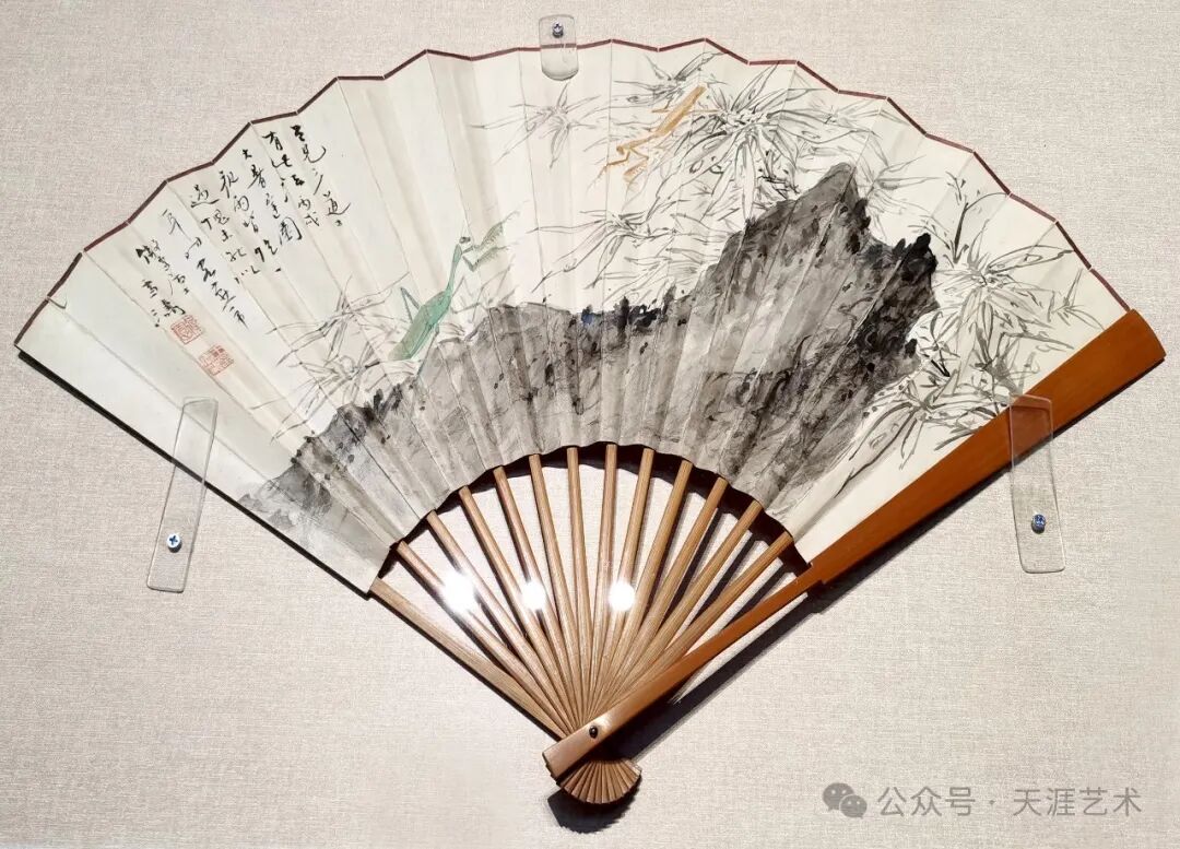 王雪涛 竹石螳螂扇面 25x54 私人收藏