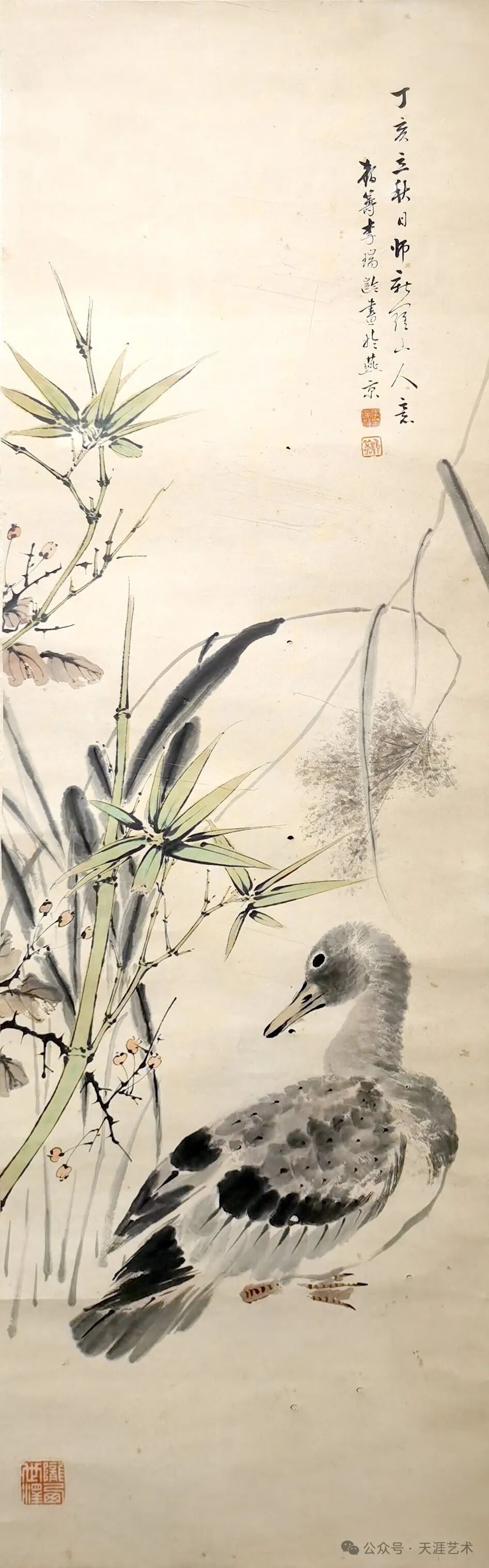 梁邦楚 双鸭 93x34 天津美术学院藏
