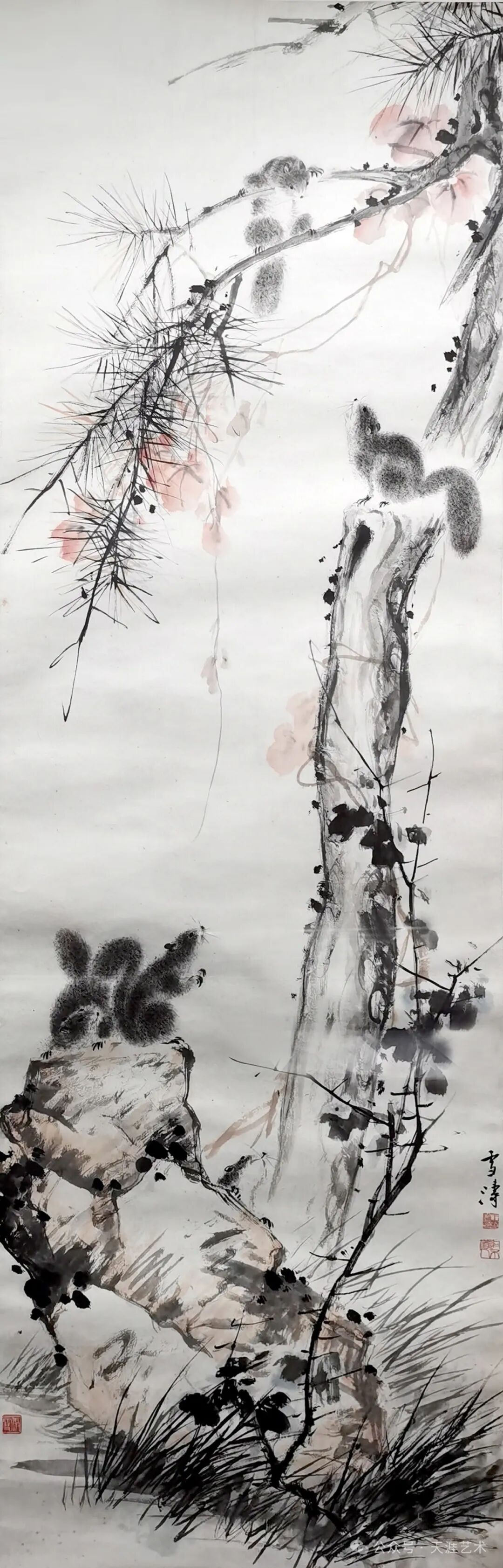 王雪涛 松树松鼠 165.5x53.5 天津美术学院藏
