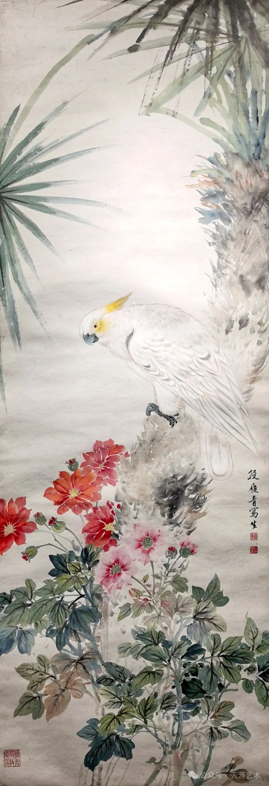 段履青 葵鸟棕榈 134x46 天津美术学院藏