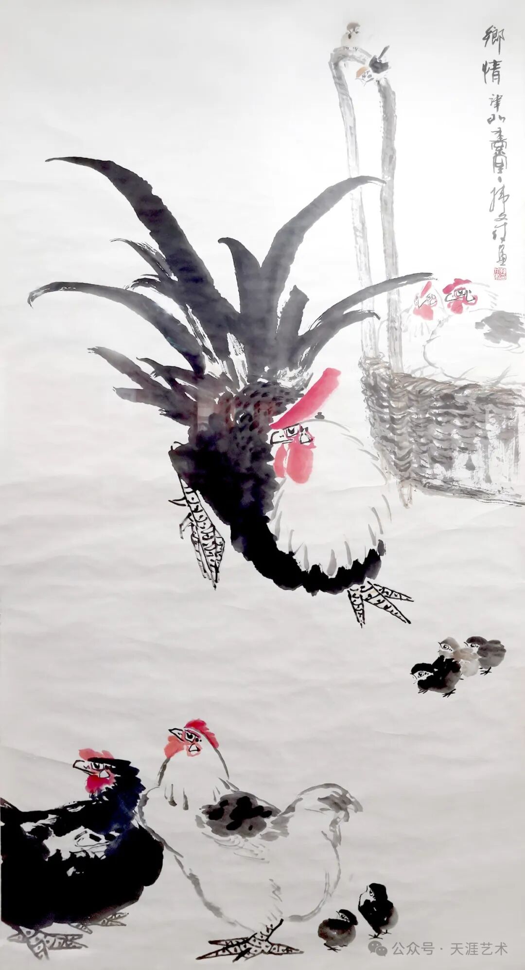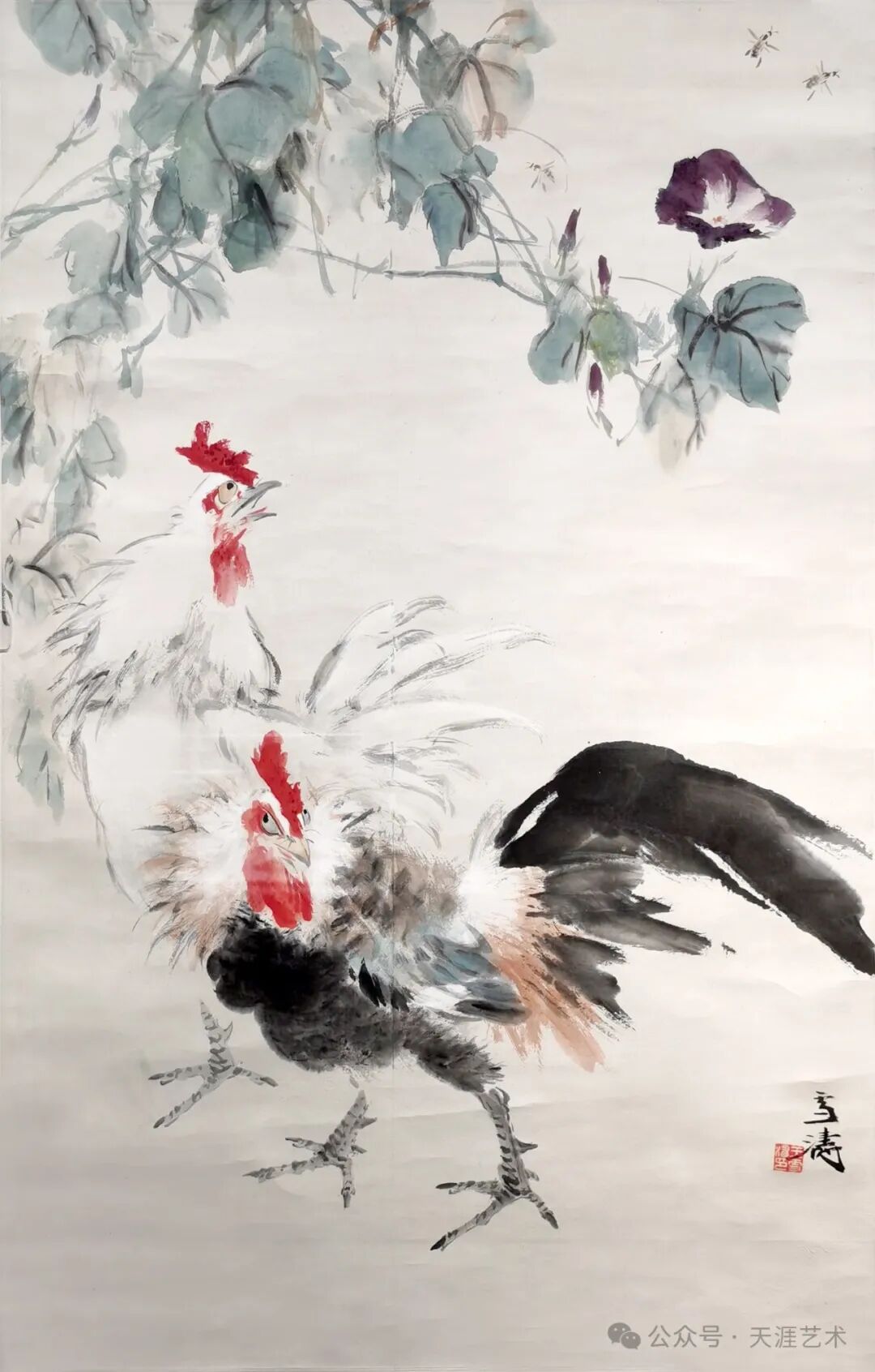 王雪涛 双鸡牵牛 83x53 天津美术学院藏