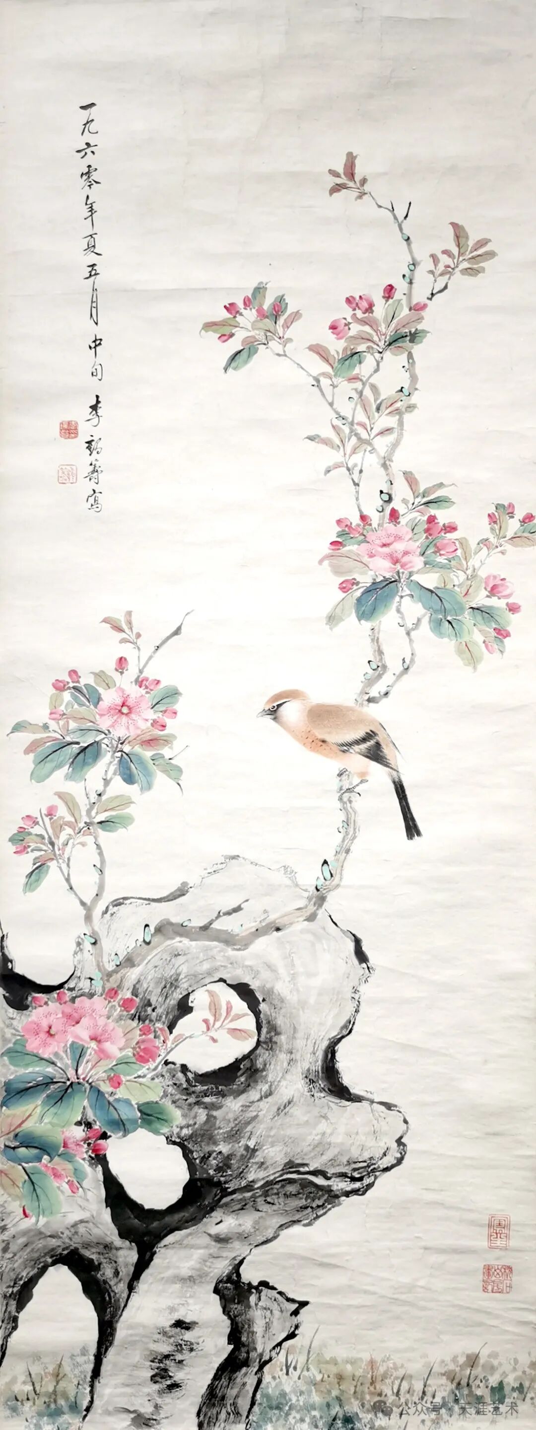 李鹤筹 画眉海棠 104x39 天津美术学院藏