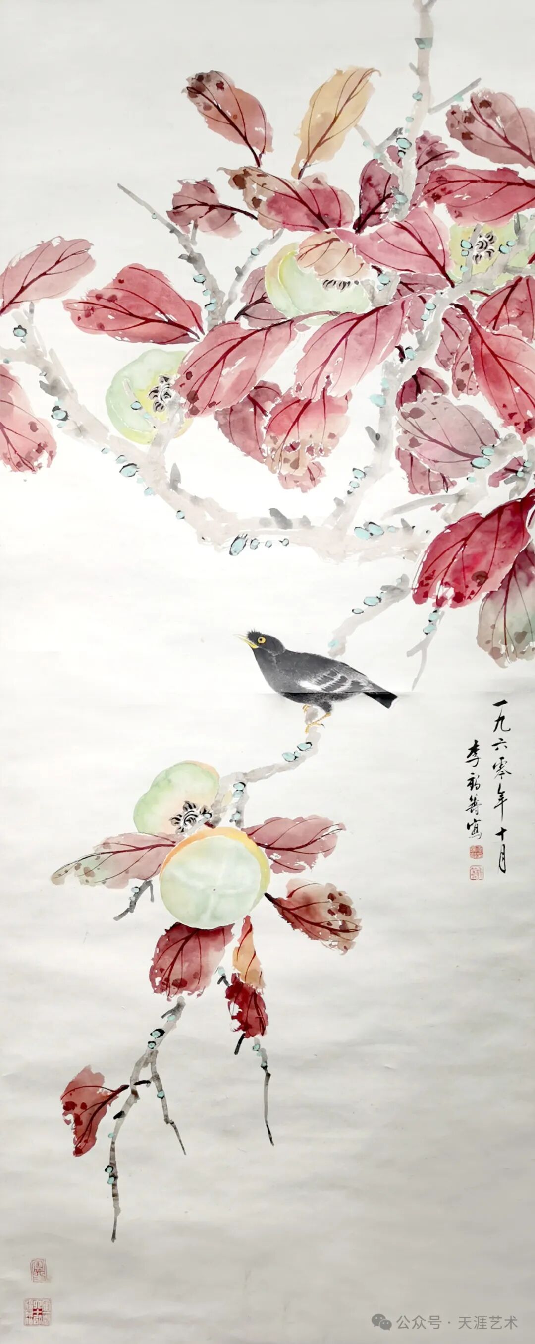 李鹤筹 柿子八哥 133x53 天津美术学院藏