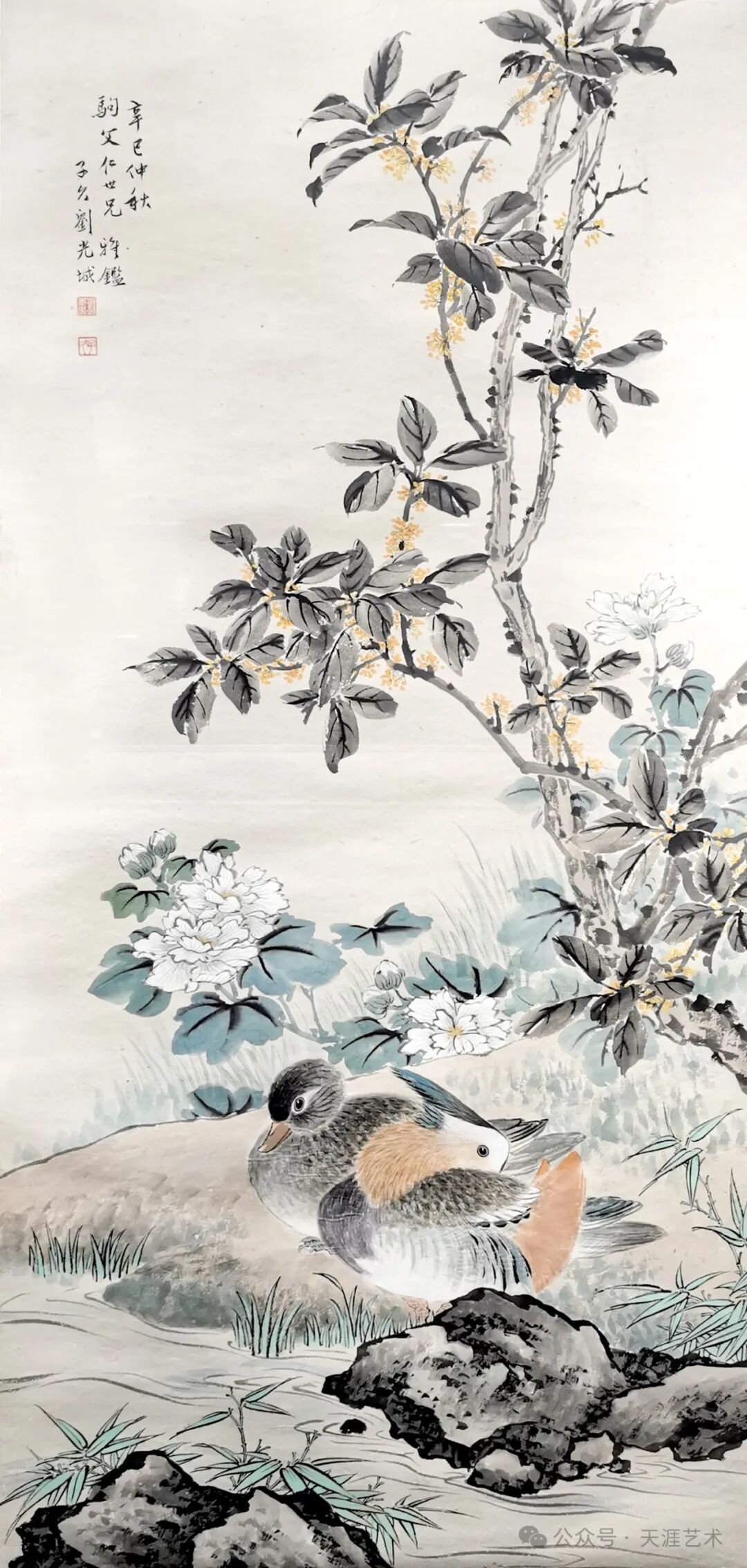 刘子久 鸳鸯芙蓉桂花 107x51 天津美术学院藏