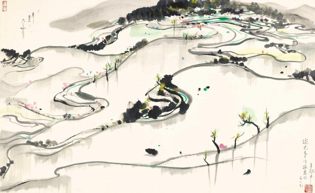 吴冠中 1987年作 江南水田 镜框