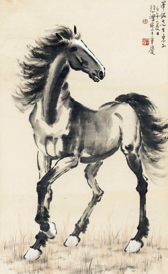 徐悲鸿 1942年作 立马 镜框