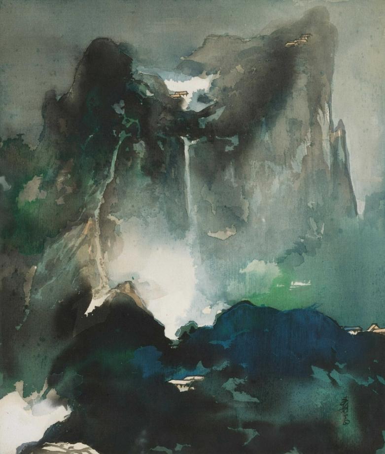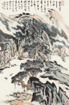 张大千 1968年作 春山积翠 镜框