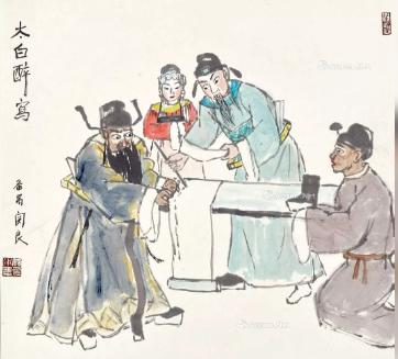 关良 太白醉写 镜框