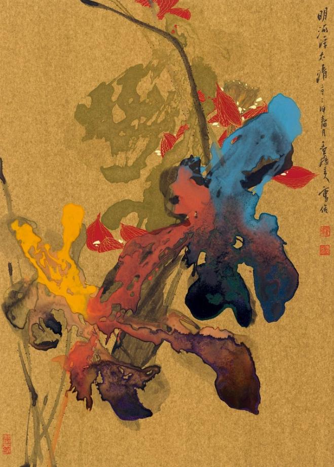 1968年乃大千艺术生涯发展重要的时间节点。六十年代画家虽主要居于巴西,然已经开始放眼世界艺术舞台的中心:美国。本作创作于1968年年中,数月之后,10月至12月间,大千于美国纽约、芝加哥及波士顿三地画廊举办一系列巡回展览,艺名大扬。作品题识云此作画于大风堂,应是在巴西巴德园大画屋完成。大千身处南美,隔岸观火般洞察东西艺术发展,一系列大尺幅泼彩作品横空出世,其中抽象与具象、传统与现代的碰撞,与画家的境遇和心境息息相关。《春山积翠》泼写兼施,传统与现代并存,画作完成后数年即收录于1970年台北雅蕴堂出版之《张大千书画集》,并选为封面,乃大千泼彩走入台湾华人观众的首选推介,意义不同凡响。