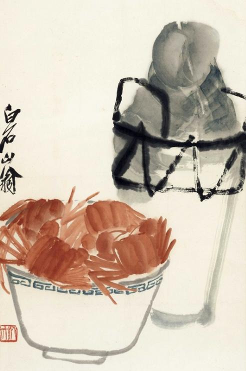 齐白石 蟹酒 镜框