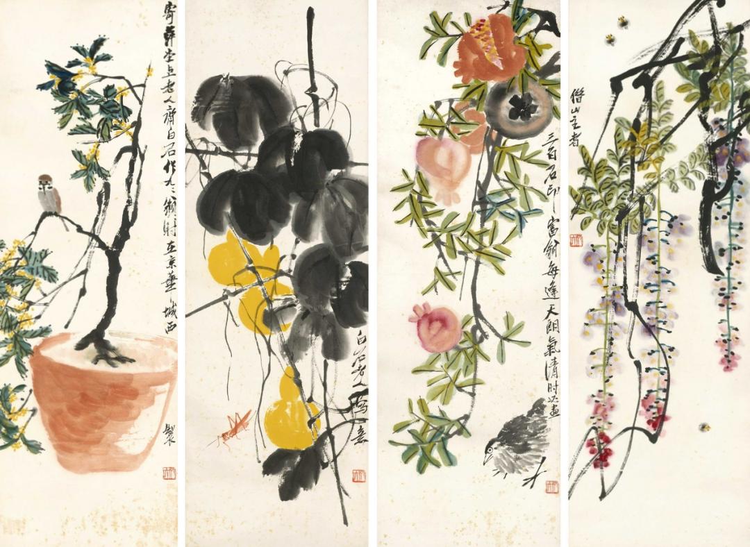 齐白石 花鸟四屏 立轴四幅