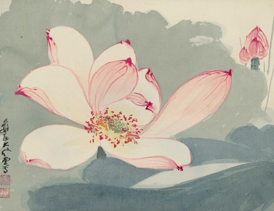 张大千 红莲 卡纸镜框