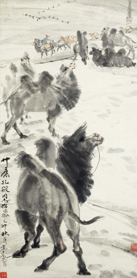 黄胄 1975年作 雪原驼运 立轴
